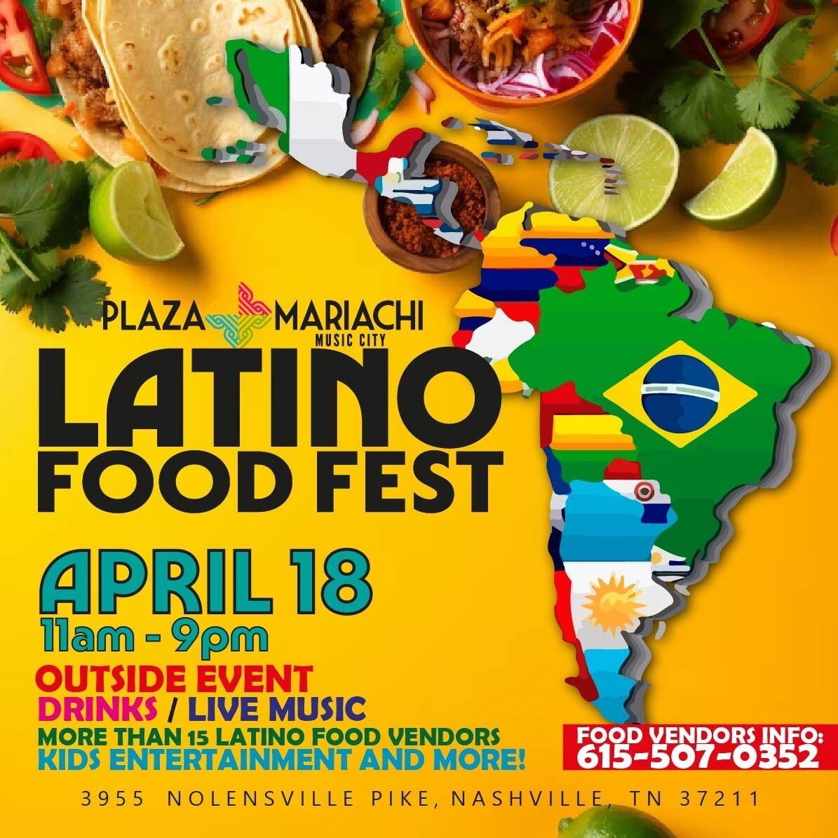 Latino Food Fest? SĂ, Por FavorSpend the day outside celebrating the flavors, culture, and energy of Latin America at Plaza Mariachi on April 18th. There will be live music, kidsâ entertainment, and 15+ Latino food vendors. Explore a wide variety of cuisines all in one place! |